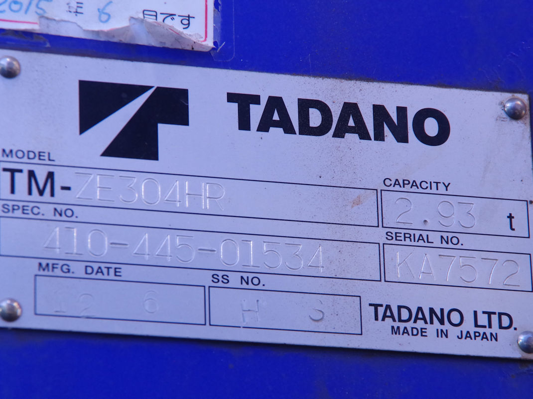 | 備考 | 増トン クレーン付 タダノ4段 ZE304HR ラジコン フックイン 標準巾 5.9m アルミブロック3方開 | ||