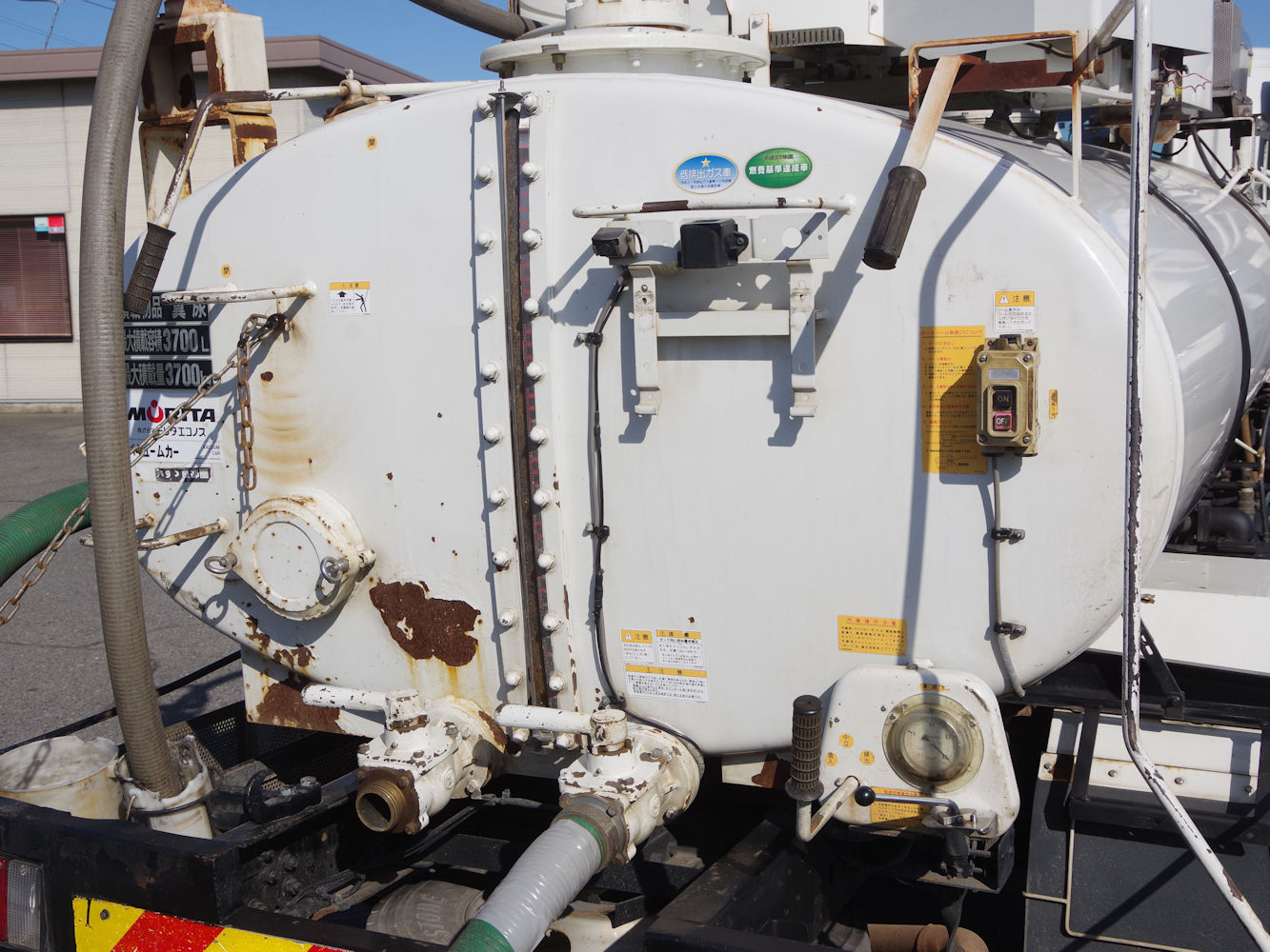 | 備考 | 3.7t 積載 バキューム 糞尿車 モリタエコノス VBR437H 3.7kl 電動ホースリール 脱臭器付 | ||