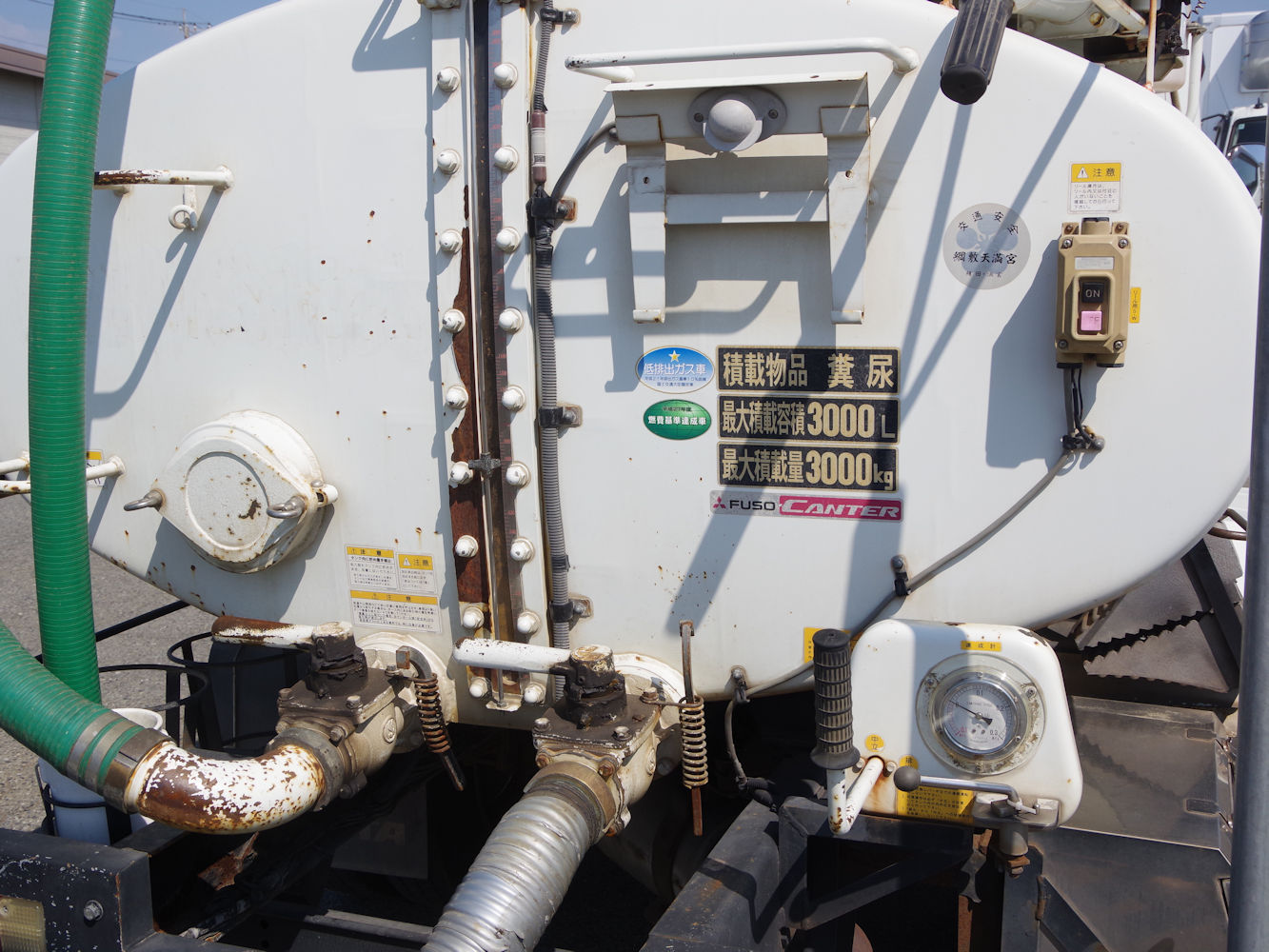 | 備考 | 3t 糞尿車 モリタエコノス VBR430H バキューム式 3.0kl 脱臭器 電動ホースリール付 | ||